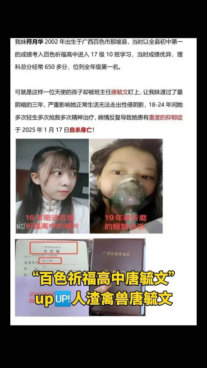 然而,唐毓文的恶行,却如一道黑暗的深渊,将她拖入无尽的痛苦之中。更令人痛心疾首的是,女生最终不堪心理重负,选择结束自己年轻的生命。