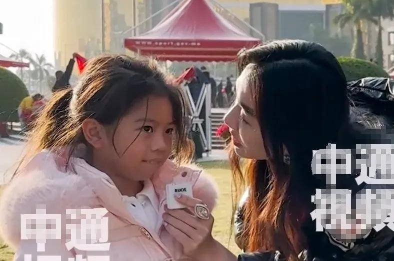 6岁的荷包蛋穿着一件粉色外套,头发随意扎成了高马尾,而且碎发随意散乱,看起来有点乱糟糟的,长相五官很像爸爸辛奇隆,肤色有点偏小麦色,她的身上没有戴包包和配饰,讲话表情也略显羞涩,看起来和普通人家的小孩子差不多。