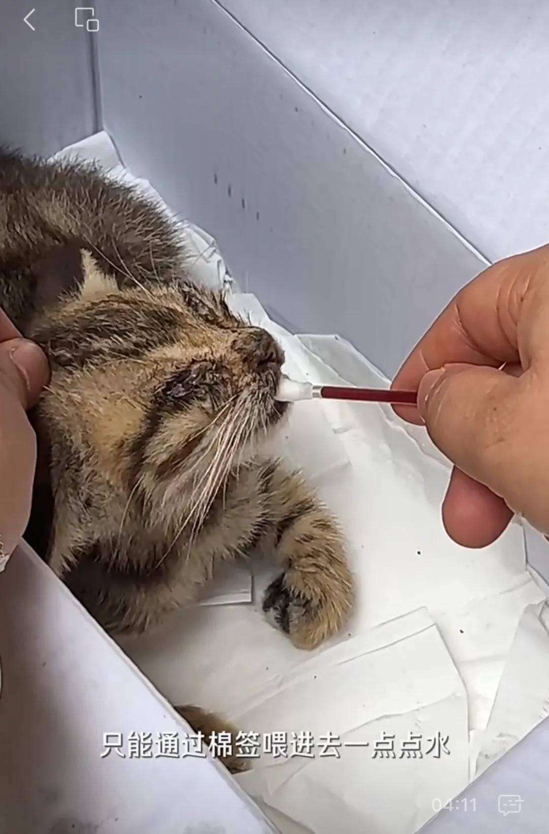 长期的营养不良和疾病,导致小猫身体虚弱走路颤颤巍巍。为了救活小猫,薇娅将它送至了最近的宠物医院检查。