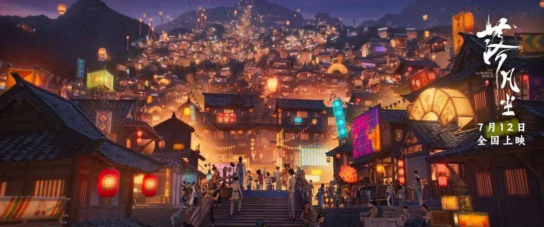 对比天上黑白色调所谓神仙居住的冰冷宫殿,人间凡尘才是极乐世界!“有我在,家就在”才是真实的世界!观众可以从中发现,家庭生活是多么美好,电影中的人物故事就在身边,亲切感油然而生。这也是牛郎织女精心建造的家园。