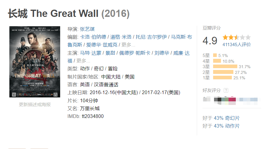 该消息一出,很多《三体》粉丝质疑:“张艺谋真的可以吗?”2016年,张艺谋曾和好莱坞团队拍了一部特效大片《长城》,该片成为了张艺谋导演生涯一大黑历史,豆瓣4.9分的成绩,也让这部电影亏损严重。