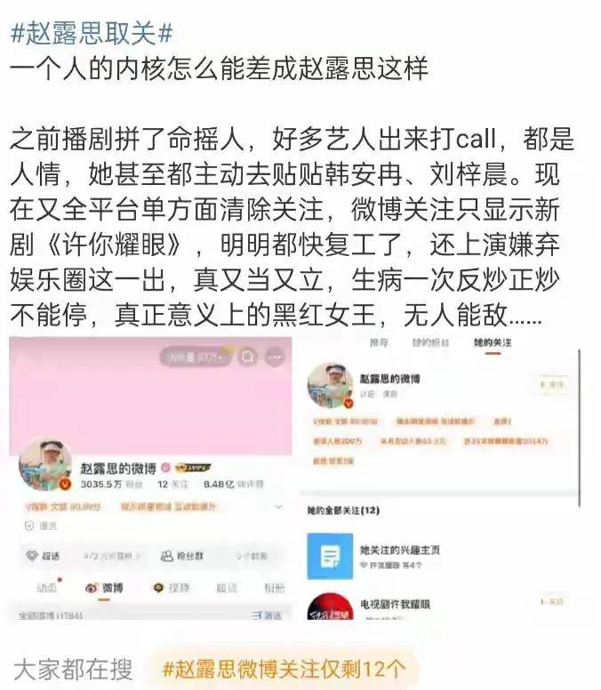 3月20号的晚上,赵露思的微博、抖音和小红书都仿佛中了魔法。微博上的关注人数一瞬间从239降到12,抖音和小红书更是惊人,竟然只剩下一个关注者。之前她和圈内好友互动得好好的,如今的剧变就像往平静湖面投入一颗巨石,惊起层层波澜。这一事件引发了热搜,网友们炸开了锅,各种猜测满天飞舞。