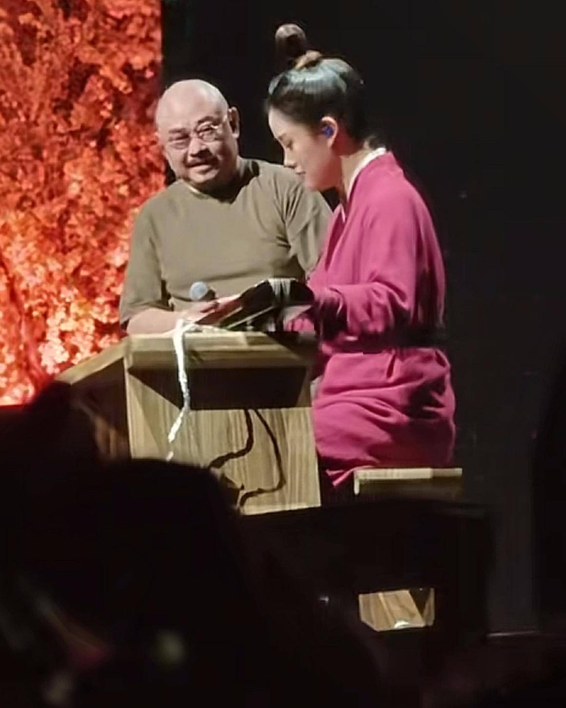 台上,乐手吴睿阳女士正专心致志地演奏古琴,琴声响起时,刀郎立即被其音色与技巧深深吸引。他的目光紧紧锁定着乐手的每一个动作,而他的身体也不自觉地随着乐曲的旋律轻轻摇摆,眼神与表情中流露出不同的情感,兼具好奇、欣赏、热爱与期待,令人忍俊不禁。可以说,此时刀郎已深陷于自身音乐的海洋,他的眼神中甚至透出一丝贪婪,网友们对此议论纷纷。