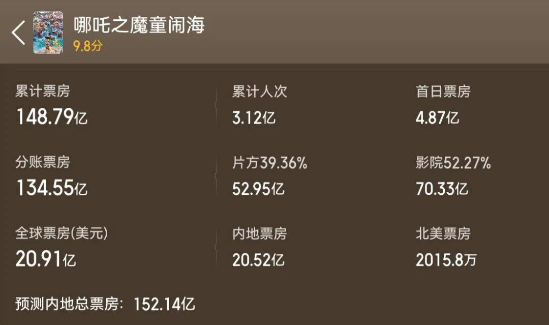 不仅如此,《哪吒2》上映小两个月时间了,每日票房依旧稳居档期第一,最近一个周末的票房还能近亿,就知道内地电影市场可谓潜力无限。