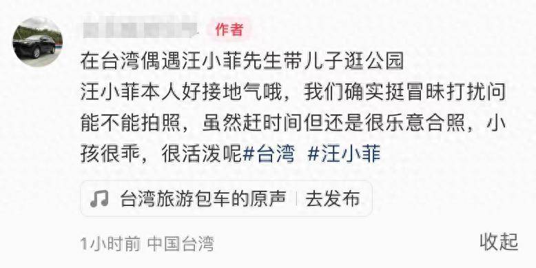 有网友晒出在公园偶遇汪小菲的视频,据这位网友描述,汪小菲本人非常接地气,虽然很赶时间但很乐意合照,儿子箖箖很乖,性格活泼。