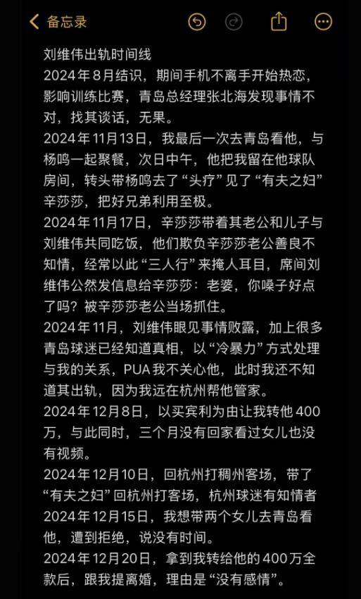 在后续内容中,李艳指出刘维伟甚至拿好友杨鸣为幌子私会小三,去年11月份,刘维伟将小三唤作老婆对其嘘寒问暖,结果被小三老公抓包,两人的不轨恋情也随之曝光,以至于一些青岛球迷也得知真相,不过彼时的李艳尚且蒙在鼓里。