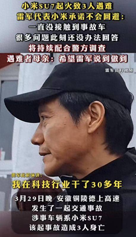 ,离小米SU7高速车祸事件已经过去数日,其相关话题却一直热度不减,日前针对这起严重事故,小米官方以及雷军本人已经做出表明表态,雷军代表小米承诺不会回避,对遇难者及其家属表示哀悼,此外也表示已经就此成立专项小组,配合调查并跟进事情调查结果。