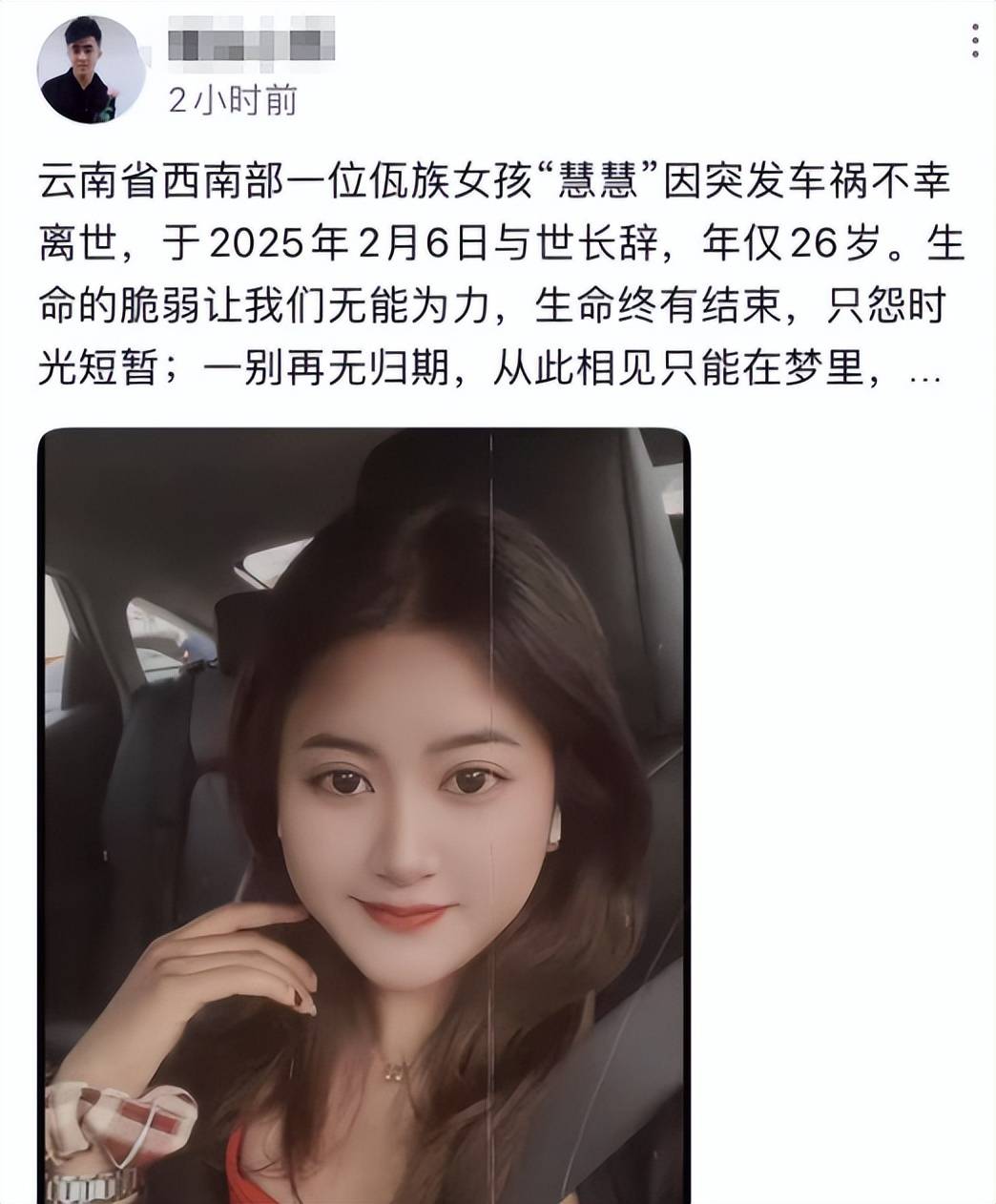 据了解,逝者名叫叶慧 ,事发之后,其亲友曾发文悼念,在家人眼中,26岁的叶慧不仅年轻漂亮,而且勤劳善良,她还没嫁人生子,命运竟然如此无情,剥夺了这么美好鲜活的生命。