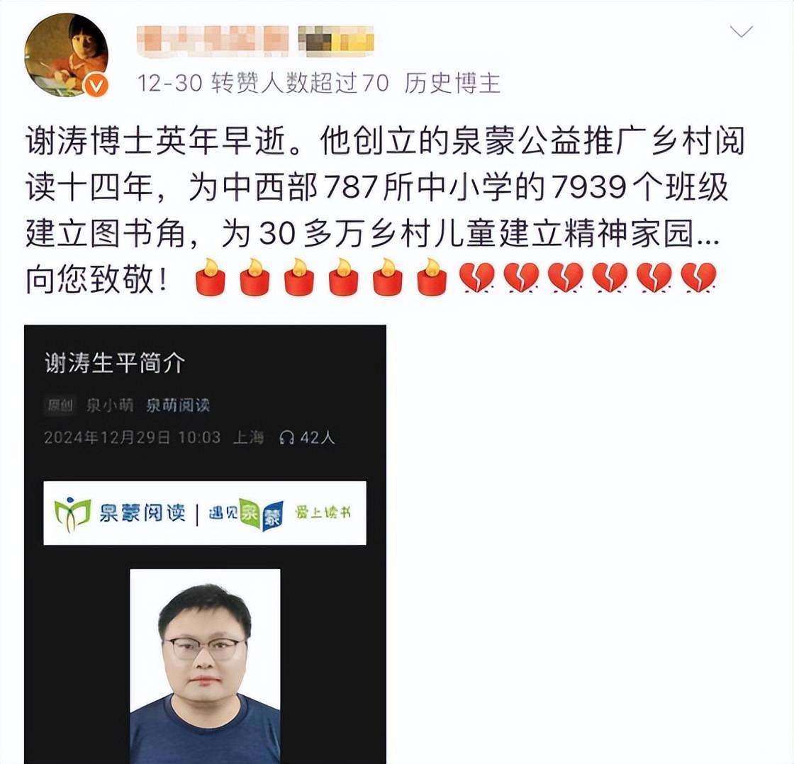 据悉,谢涛博士是湖南邵东市界岭镇人,1982年11月出生,本科就读于吉林大学哲学系,2009年被历史学者萧功秦教授收为入室弟子,后特招为中国近现代史博士研究生,是上海师范的大学历史博士,因在读期间专注公益,最终主动放弃学位。